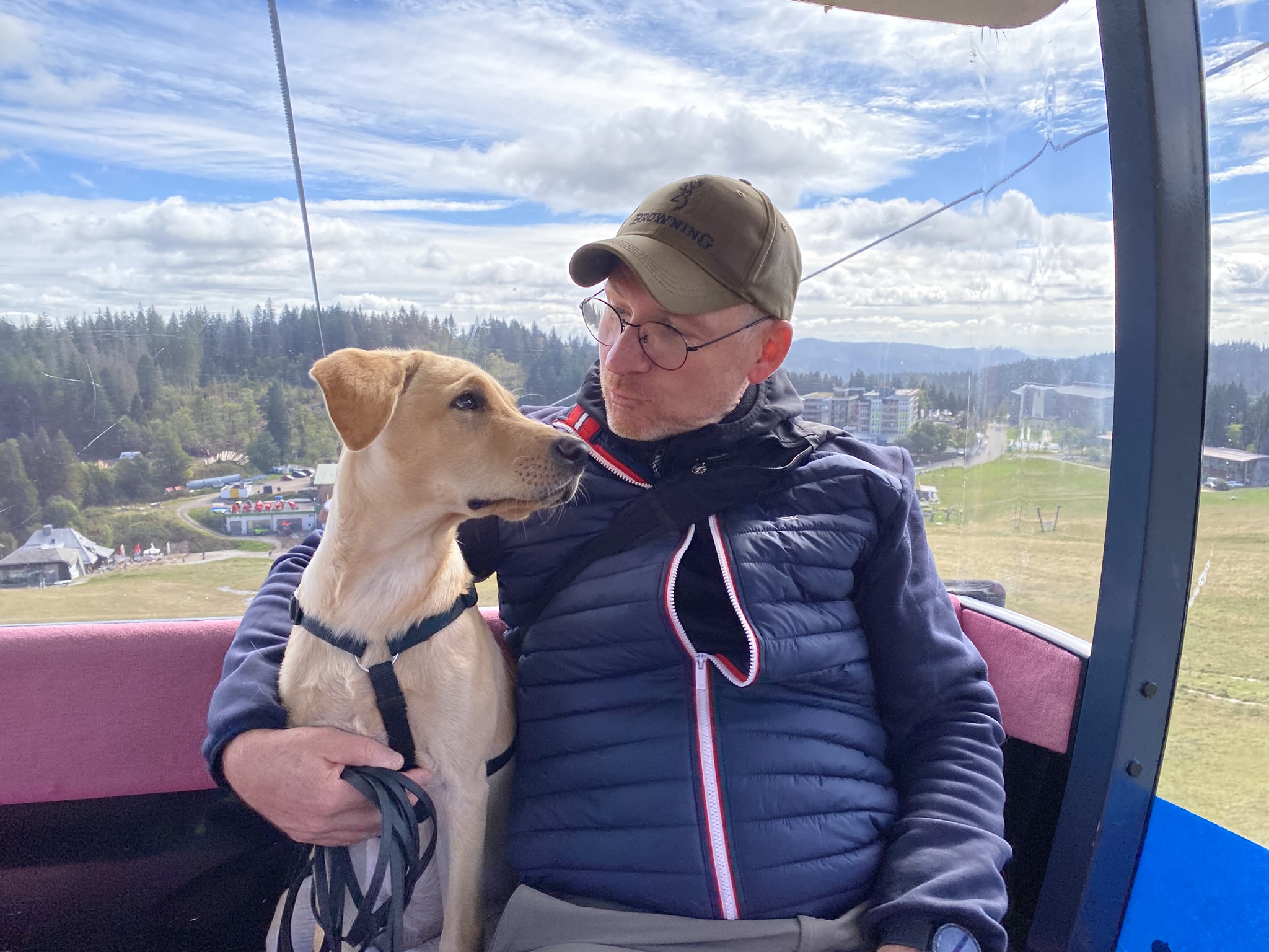 Im Spätsommer ging es mit dem ganzen Rudel in den Südschwarzwald. Die gemeinsame Zeit stärkte die Bindung und vertiefte das Vertrauen. Auch als Junghund meisterte Sun die verschiedensten Situationen souverän – ob Restaurantbesuch, Bergbahnfahrt oder Bootstour.